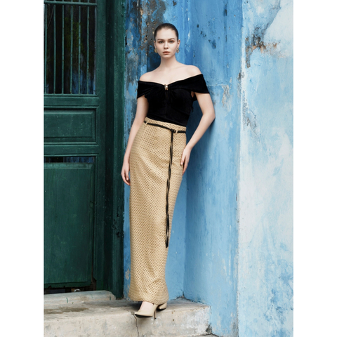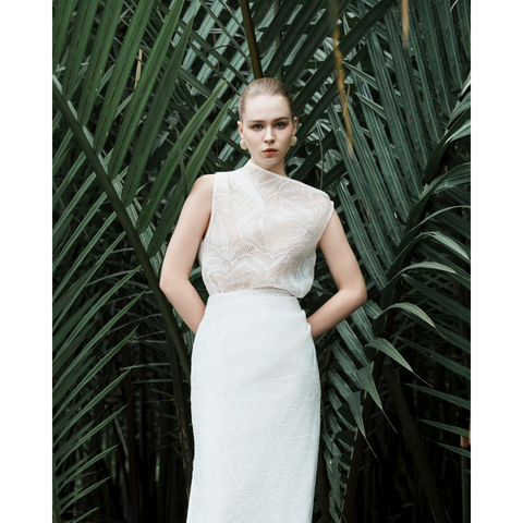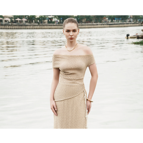 Tops asimétricos para mujer CARYLN OFF-THE SHOULDER TOP Tela de celosía rústica de alta calidad Ropa de mujer Tienda en línea Vietnam