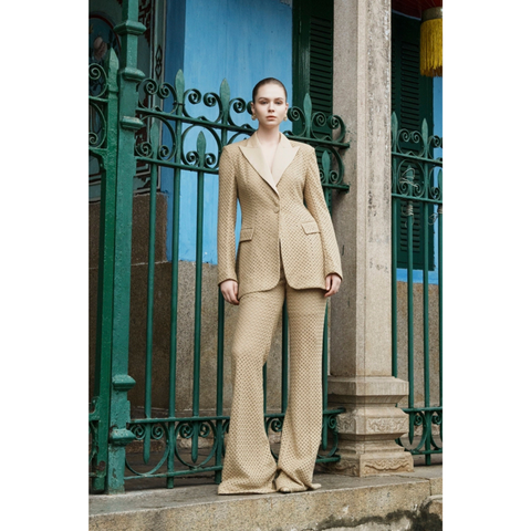 Nuevo diseño 2025 conjunto de chaqueta Formal para mujer un botón CLEF NOTCHED BLAZER tela de celosía rústica ropa de verano para mujer